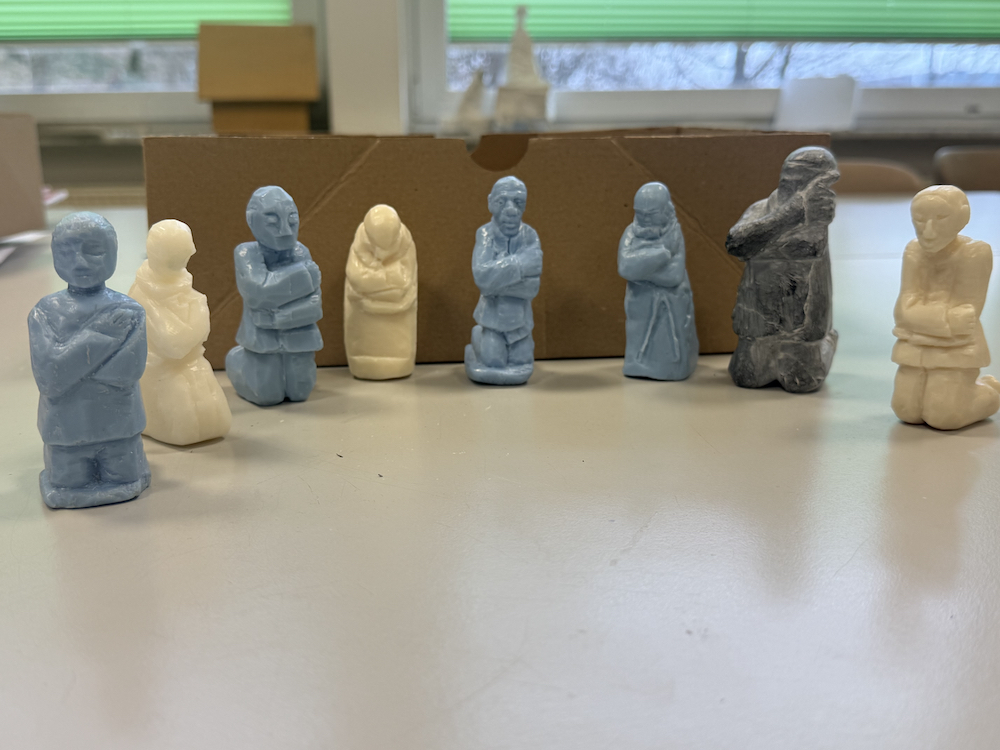 Die Trauernden Eltern nach Käthe Kollwitz werden in Seife, Speckstein, oder Gips erarbeitet: