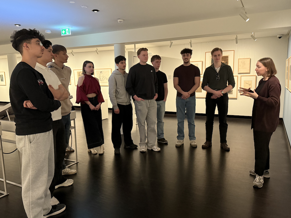 Am 4. März war es soweit. Wie geplant besuchten die Kunstkurse der Q1 das Käthe - Kollwitz - Museum und das Museum Ludwig. Morgens waren die Gruppe 1 und 2 im Kollwitz- Museum und die Gruppe 3 und 4 im Museum Ludwig. Nina Blecher und Christiane Sandkuhl begleiteten die jeweiligen Gruppen im Museum Ludwig, während Gautam die Gruppen im Kollwitz Museum bgeleitete. Tatsächlich waren der Höhepunkt morgens und Nachmittags die Erstellung eigener Kunswerke in der Radiewerkstatt. Jeder Schüler, jede Schülerin durfte eine eigene Kaltnadelradierung im kleinen Format herstellen. Es gelang.