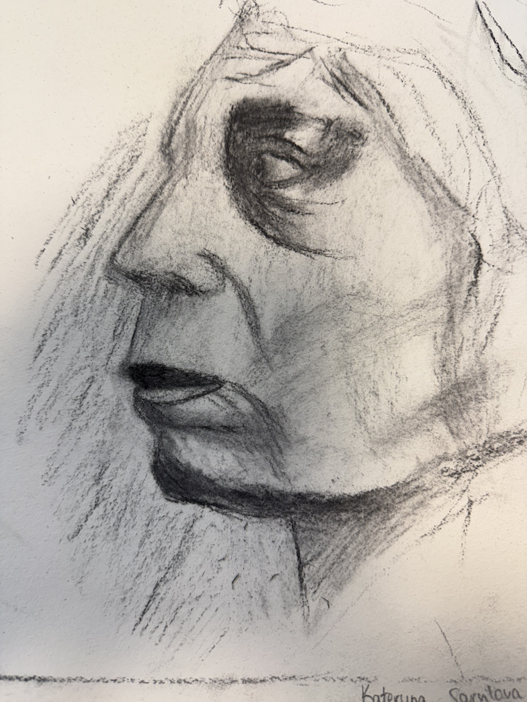 Wir starten mit Bleistiftskizzen und übertragen dann in Kolezeichnungen: